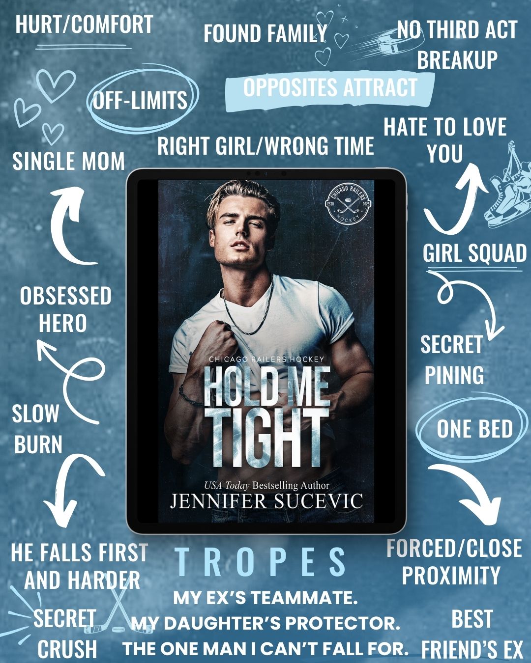 Hold Me Tight is a best friend’s ex, enemies-to-lovers, slow-burn pro hockey romance with a hero who’s been biding his time—and a heroine afraid to trust her heart to the wrong man again.